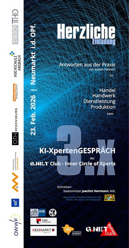 We look forward to welcoming the patron, Minister of State Joachim Herrmann, as well as former Minister of State Eberhard Sinner from the OstWestWirtschaftsForum Bayern (East-West Economic Forum Bavaria) and all the personalities and experts from the participating universities, the Neumarkt Chamber of Industry and Commerce, the Neumarkt Chamber of Crafts and the participating entrepreneurs.
